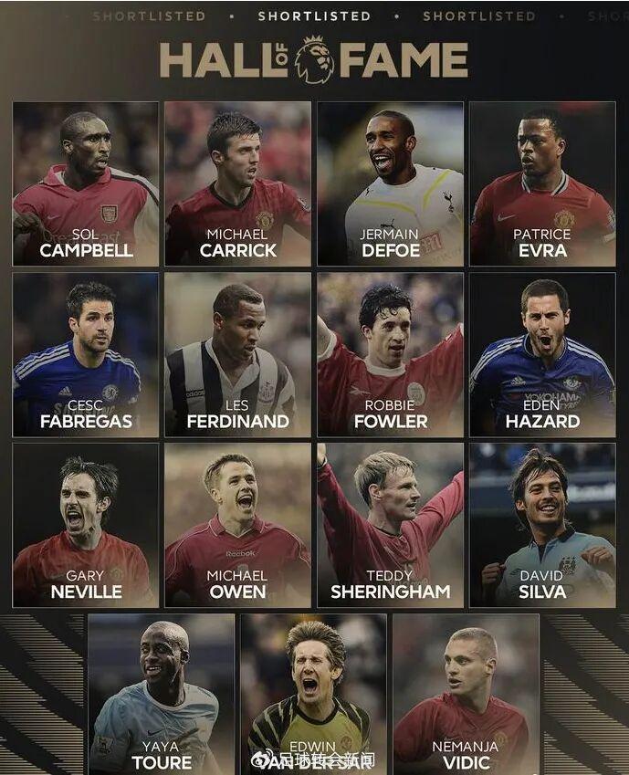 2025年英超名人堂15人候选名单公布,将有2人入选名人堂。